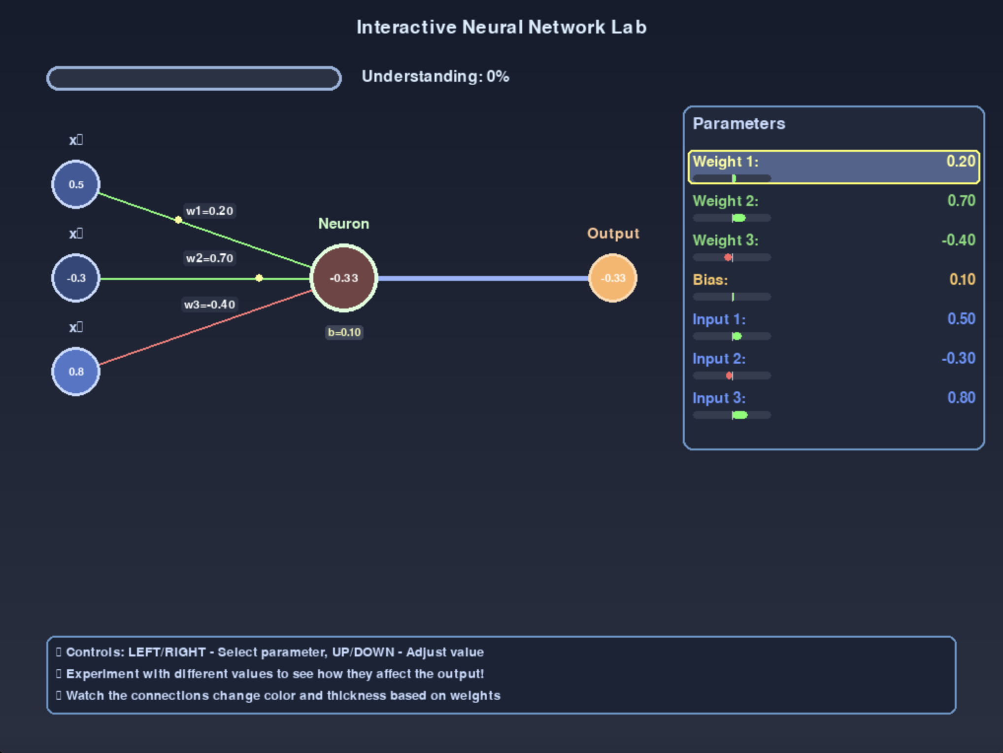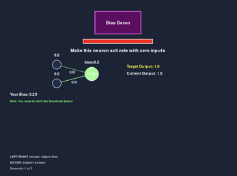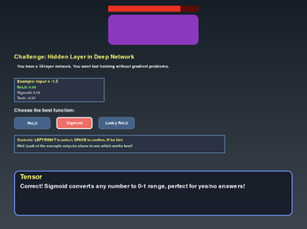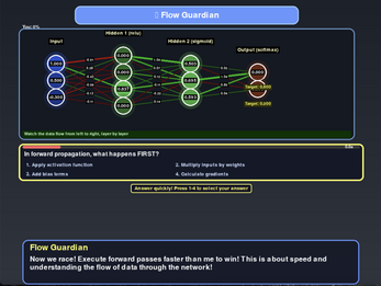 An educational RPG game that teaches neural network concepts through interactive storytelling, quiz-based boss battles, and hands-on coding challenges. Join Alex and their AI companion Tensor on a quest to master neural networks from basic concepts to building GPT from scratch.
